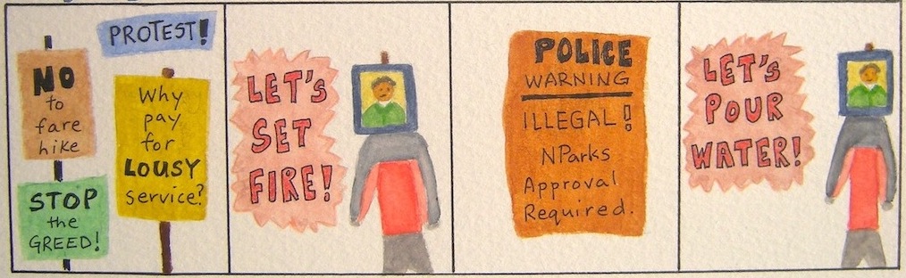 only in Singapore Posted on 10/04/2014 by rojaks Reply Protestors at Hong Lim Park dropped bid to burn effigy of Transport Minister /2014